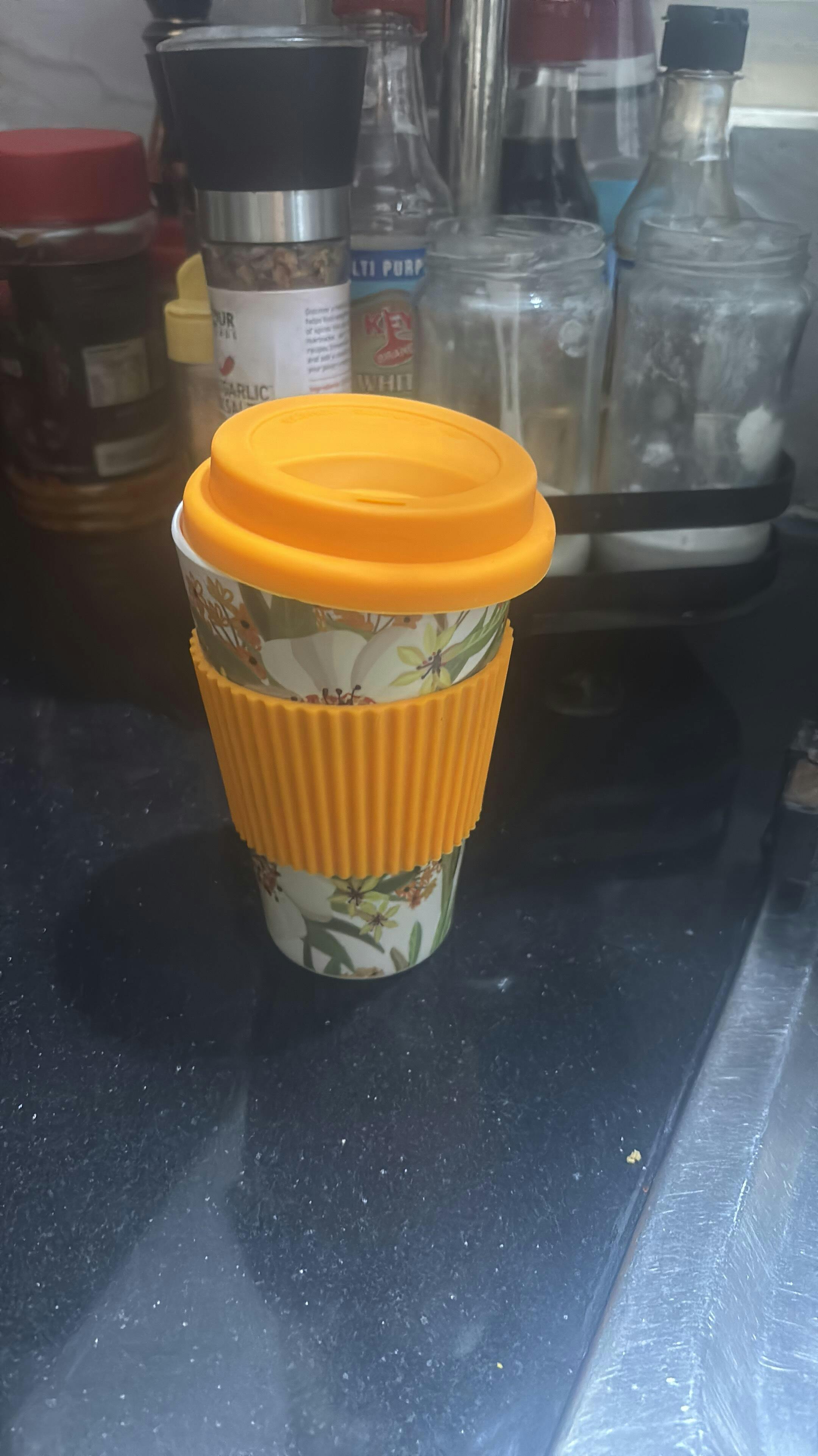 The eco-friendly material is biodegradable, BPA-free, and non-toxic, making it a healthier alternative to single-use plastic cups. With its stylish floral design, this bamboo fiber cup is not only practical but also adds a natural touch to your daily lifestyle.