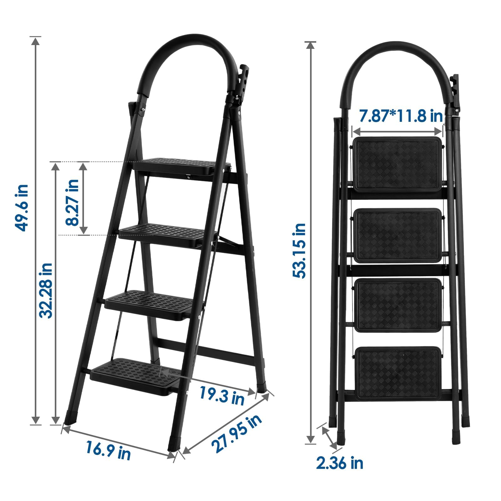 StepSmart Space-Saver Folding Ladder | 4-Step Heavy-Duty Foldable Step Ladder